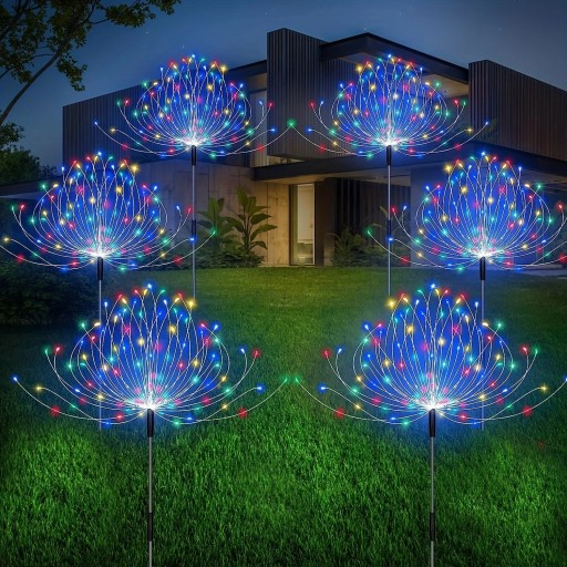słoneczna lampa ogrodowa jest wyposażona w pilota zdalnego sterowania, za pomocą którego można regulować 3 poziomy jasności i 8 trybów migania. Możesz wybierać spośród różnych trybów regulacji, aby znaleźć najbardziej odpowiedni efekt świetlny. Fajerwerki mają funkcję pamięci, po następnym włączeniu powrócą do ostatnio ustawionego trybu. Można również ustawić wyłączanie lampy po 3/5/8 godzinach, aby oszczędzać energię.