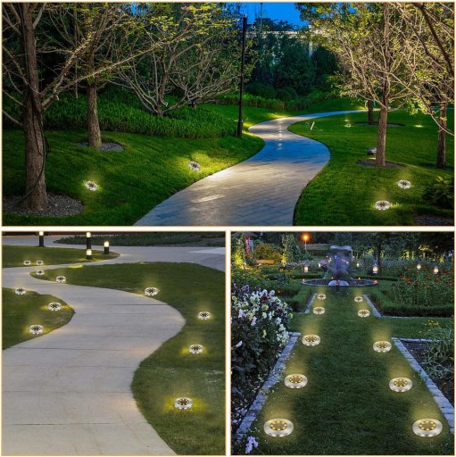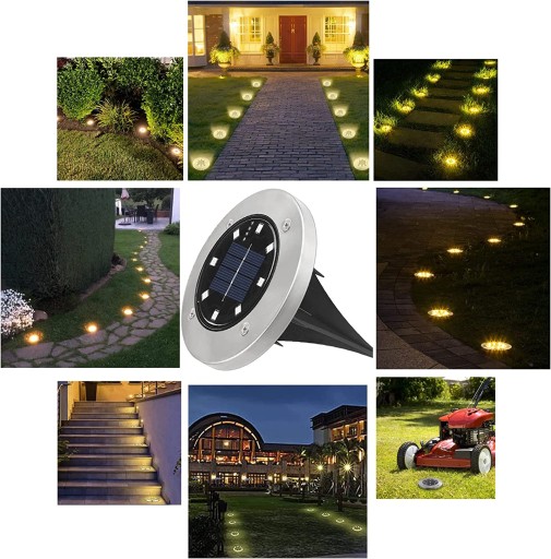 LAMPKI OGRODOWE SOLARNE GRUNTOWE WBIJANE NAJAZDOWE LED ŚWIECĄCY DYSK-- ciepłe białe światło