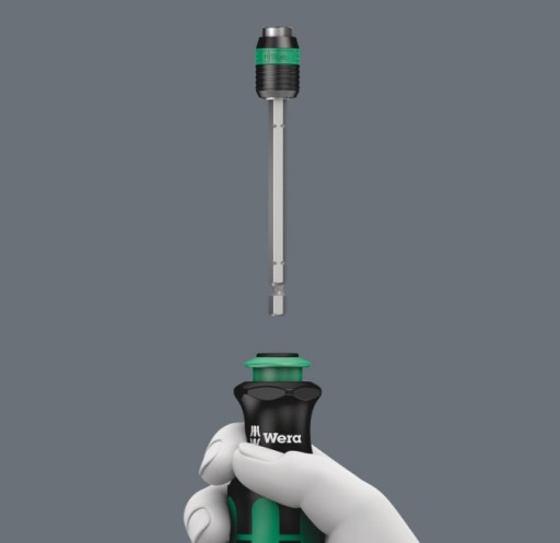 Narzędzia kompaktowe Wera równoczesne zastosowanie obu rodzajów wkręcania „ręcznego” lub „maszynowego”. System wymiennych ostrzy z uchwytem o kompaktowej konstrukcji z wykorzystaniem ostrzy na małej przestrzeni sprawia, że użytkownik jest mobilny i zewnętrzny. Nadaje się do bitów z gniazdem 1/4" zgodnie z normą DIN 3126-C 6,3 i E 6,3 (ISO 1173) i szeregami złącza Wera 1 i 4. Z wyłącznikiem, bagnetem, zasilaczem Rapidaptor. Uchwyt Kraftform z zabezpieczeniem przed stoczeniem, wieloelementowy dla wartości ergonomicznych skręcania. Zintegrowany magazynek do przechowywania bitów. W ten sposób dziesięć zestawów jest dostępnych jako 6-częściowy zestaw wkrętaków i niezbędne wyposażenie do minimum. Ostrze bagnetowe chowane w uchwycie z uchwytem do szybkiej wymiany umożliwia natychmiastową obsługę ręczną również w miejscach o ograniczonej przestrzeni, gdy ostrze jest wsunięte.