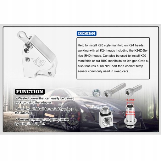 2. Zaprojektowany przez nas adapter może być używany ze wszystkimi głowicami K24, w tym głowicami serii K24Z (R40). Może być również używany do montażu kolektorów K20 lub cięcia kolektorów RBC, ponieważ rura obejściowa wody jest nieco inna, a adapter kolektora dolotowego nie jest wymagany podczas korzystania z adaptera.