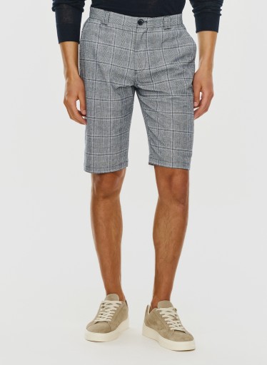 Granatowe szorty męskie w białą kratę od Pako Lorente. Krata to wzór, który nigdy nie wychodzi z mody. Szorty te sprawdzą się idealnie u mężczyzn, którzy lubią czuć się komfortowo, a jednocześnie wyglądać przy tym stylowo. Model tych szortów doskonale sprawdzi się w letnich stylizacjach w połączeniu z koszulą, T-shirtem czy też zwykłym polo. Szorty są lekkie i przyjemne w dotyku, a to za sprawą najwyższej jakości materiałów z jakich zostały wykonane. Model ten posiada proste nogawki, zapięcie na ekspres i guzik, a także szlufki na pasek.