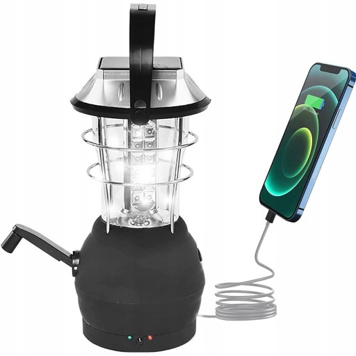 - Latarnia kempingowa z portem ładowania USB jest jednocześnie powerbankiem, który w nagłych wypadkach bezpiecznie naładuje smartfon lub inne urządzenia.