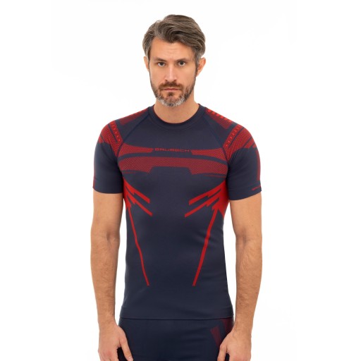 Koszulka męska Brubeck DRY z krótkim rękawem Termoaktywna | ciemnoniebieski-czerwony