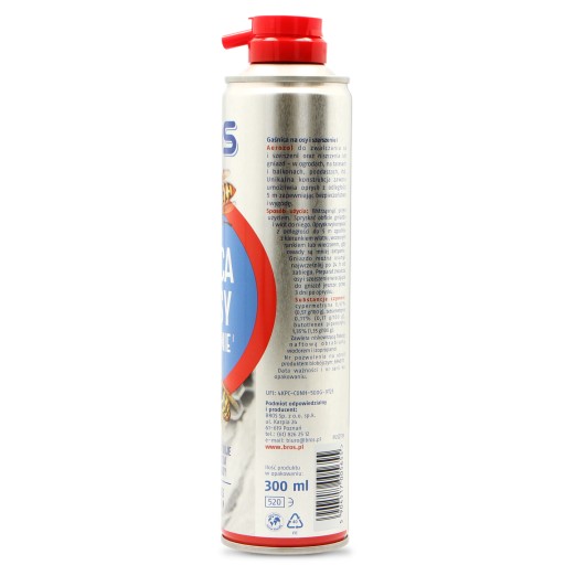 Aerozol do zwalczania os i szerszeni oraz niszczenia ich gniazd w ogrodach, na tarasach i balkonach. Unikalna konstrukcja zaworu umożliwia oprysk z odległości 5 m zapewniając bezpieczeństwo i wygodę.