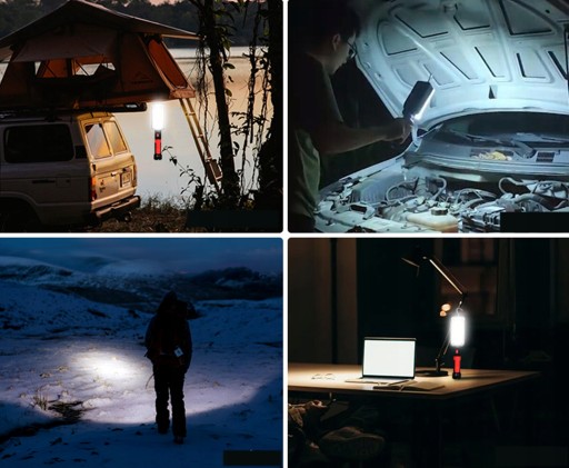 LATARKA WARSZTATOWA MOCNA LAMPA LED COB USB HAK AKUMULATOROWA MAGNES LAMPKA
