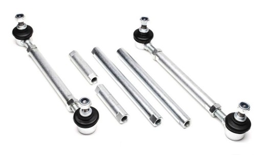 Komplet nowych łączników przedniego drążka stabilizatora, firmy TA-Technix, składający się z kilku części co umożliwia dopasowanie długości łączników. Dzięki temu, zestaw jest bardzo uniwersalny.