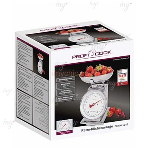 Waga kuchenna ProfiCook w stylu retro działa mechanicznie i dzięki dołączonej misce do ważenia idealnie nadaje się do precyzyjnego ważenia i pomiaru żywności i składników.