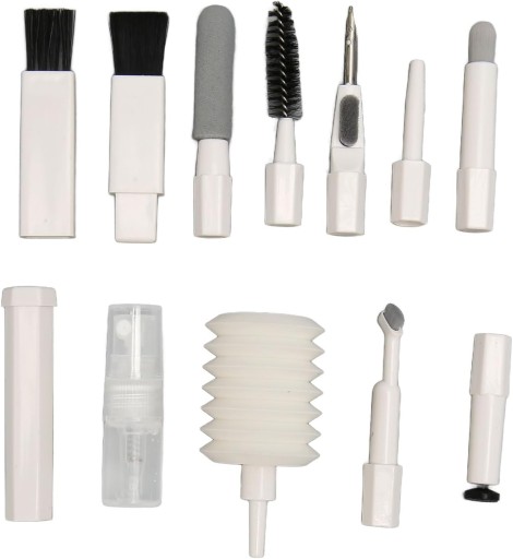 MIĘKKA SZCZOTKA O WYSOKIEJ GĘSTOŚCI Skutecznie usuwa kurz z komputerów laptopów tabletów i klawiatur PRZEDŁUŻ ŻYWOTNOŚĆ URZĄDZENIA Upewnij się że Twoje urządzenia elektroniczne działają z najwyższą wydajnością i dłużej IDEALNY DO BEZPRZEWODOWYCH SŁUCHAWEK Dokładne czyszczenie bezprzewodowych słuchawek dousznych i innych urządzeń za pomocą metalowej końcówki pióra mini szczoteczki i gąbki SZEROKIE ZASTOSOWANIE Dokładnie wyczyść telefony komórkowe zestawy słuchawkowe komputery tablety aparaty fotograficzne i inne Przenośna konstrukcja Lekka i trwała skrzynka narzędziowa ułatwiająca przechowywanie i czyszczenie w podróży