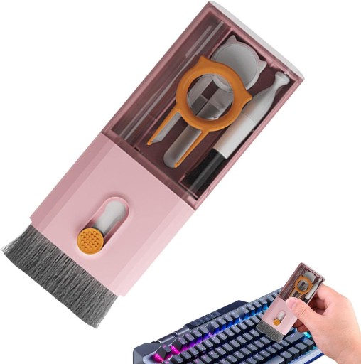 Innowacyjna konstrukcja pióra czyszczącego W stanie zaspokoić różne potrzeby czyszczenia zestaw do czyszczenia klawiatury łączy pięć funkcji w tym końcówka silikonowa polar gąbka flokowana ściągacz do kluczy konewka i szczotka. Prosty w użyciu Zestaw do czyszczenia komputera został zaprojektowany z wysuwaną szczotką do czyszczenia czapka ochronna chroni końce gdy nie jest używana ściągacz klawiszy ułatwia otwieranie klawiszy na klawiaturze. Skuteczne czyszczenie Elektroniczny zestaw do czyszczenia jest skutecznym czyszczeniem bez zarysowania wyglądu produktu szczotka jest umiarkowanie twarda i ma wysoką gęstość i może być używana do czyszczenia pęknięć plam cząstek wapienia kurzu i innych. Wygodny i przenośny Może być transportowany w dowolnym miejscu i czasie zestaw do czyszczenia laptopa został zaprojektowany tak aby był mały i lekki łatwy do przechowywania bez zajmowania dużo miejsca. Powszechne zastosowanie Zestaw do czyszczenia klawiatury nadaje się do smartfonów tabletów laptopów komputerów słuchawek i innych gadżetów świetny prezent dla przyjaciół lub rodziny oraz poręcznego narzędzia do czyszczenia urządzeń elektronicznych.
