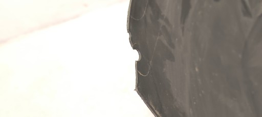 Delikatne uszkodzenia zaznaczone markerem na zdjęciu.