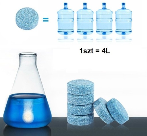 Można rozpuścić 1 tabletkę w 4 litrach wody bezpośrednio w zbiorniku płynu do spryskiwaczy
