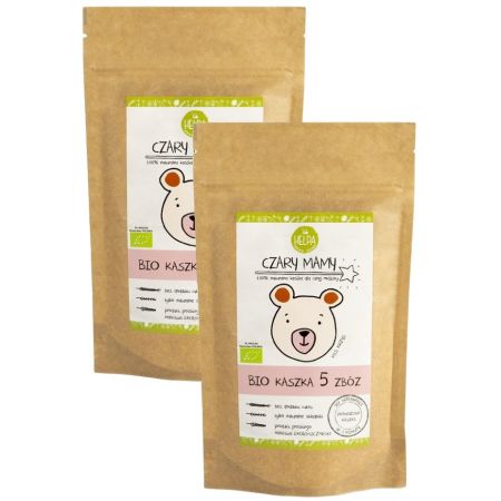kaszka gryczana ekologiczna (20 %), kaszka jaglana ekologiczna (20 %), pełnoziarnista kaszka manna z pszenicy orkisz ekologiczna (20 %), kaszka owsiana ekologiczna (20 %), kaszka żytnia ekologiczna (20 %)