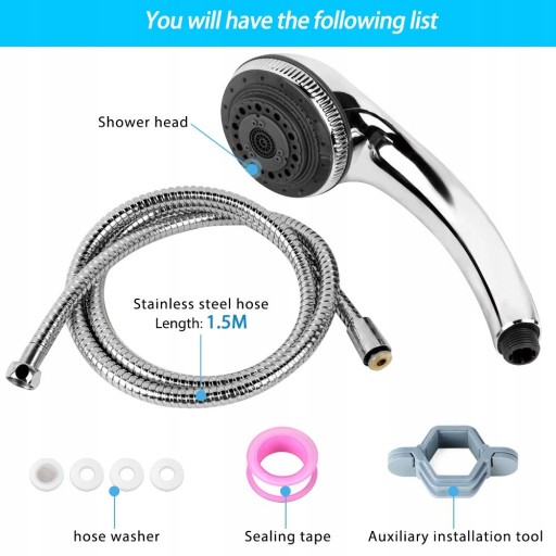 - ▶ 【Głowica prysznicowa i zestaw węża】 Incl. Prysznic ręczny, 1,5 m wąż prysznicowy, hydraulik i 4 czyszczenia węża, 7 regulowanych głowic prysznicowych do łazienki są nie tylko odpowiednie dla dorosłych, ale także dla niemowląt i zwierząt domowych.