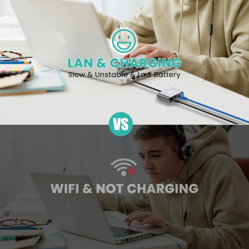 Plug and Play Adapter USB C na Ethernet można podłączyć do laptopów, telefonów komórkowych, tabletów itp. Wbudowany inteligentny chip zapewnia szybki i bezpieczny port ładowania, utrzymując nieprzerwane działanie sieci urządzenia, ale także pozwala uniknąć zwarć, wysoka temperatura, przetężenie i przepięcie. Nie są wymagane żadne dodatkowe sterowniki ani oprogramowanie.