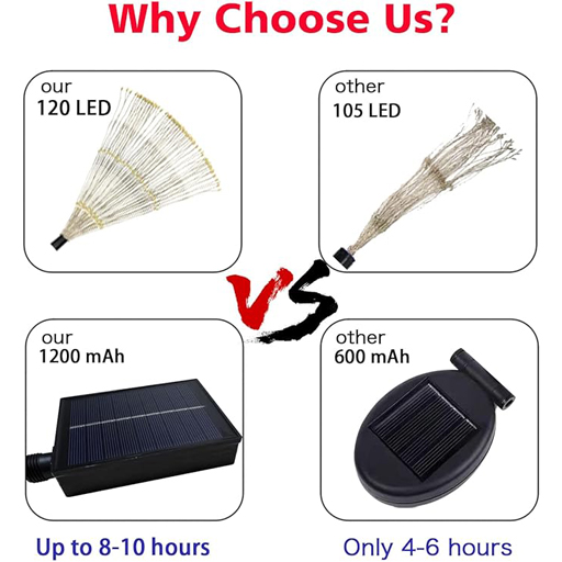 Just insert the solar firework light into the soil and turn on the button on the back of the solar panel, no need to connect additional cables. Easy to use and safer.