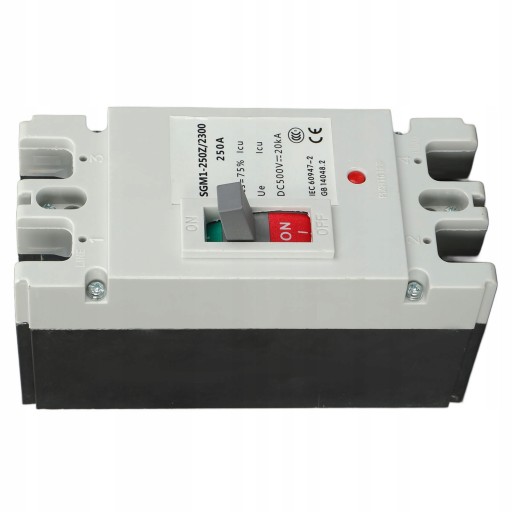 - <h2>Specyfikacja:</h2><ul><li>Typ artykułu: wyłącznik automatyczny</li><li>Model: SGM1-250Z/2300</li><li>Materiał: tworzywo termoutwardzalne BMC.</li><li>Prąd znamionowy: 250A</li><li>Napięcie znamionowe (Ue): DC 500 V</li><li>Zdolność zrywania: 20KA</li><li>Zalecana metoda instalacji (2P): okablowanie pionowe, wejście od góry i wyjście od dołu.</li></ul>. Wyłącznik obwodu 2P MCCB Solar Battery Protection