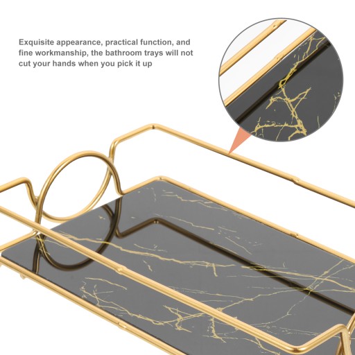 Piękne tace łazienkowe mogą przechowywać przedmioty, takie jak biżuteria, kosmetyki, tace zapachowe, akcesoria łazienkowe i małe przedmioty, schludnie i w zasięgu ręki, nie zajmując zbyt dużo miejsca. Nadaje się do różnych scen, takich jak komoda, strona zlewu, sypialnia, salon, stolik nocny itp.