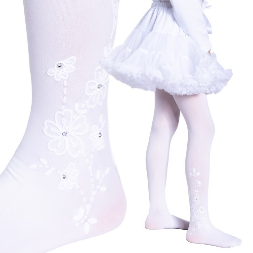 Rajstopy BIAŁE dziewczęce KOMUNIJNE z wzorem SUPER JAKOŚĆ