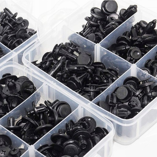 Zestaw spinek mocujących obejmują 32 najpopularniejsze rozmiary, które są powszechnie stosowane w większości samochodów dostępnych na rynku.
