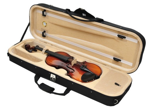 Wnętrze futerału pokryte jest miękkim welurem doskonale chroniącym skrzypce przed uszkodzeniami mechanicznymi. Dopasowana kształtowa komora zabezpiecza instrument przed przesuwaniem się podczas transportu.