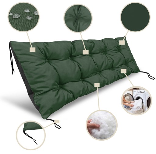 2 садовые подушки 120x40 см для скамейки-качалки из поддона, водонепроницаемые, зеленые