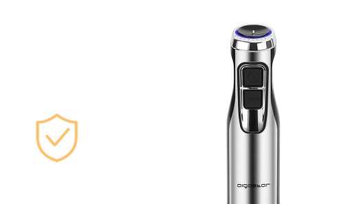 Dwa przyciski prędkości z 6-biegowym przełącznikiem impulsowym; na niskich poziomach prędkość można regulować, lekko obracając; na wysokich poziomach można włączyć funkcję turbo i osiągnąć najwyższą prędkość, szybko przetwarzając żywność