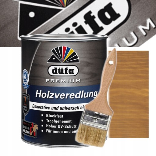 Dekoracyjna lazura uniwersalna do wykonywania ochronnych powłok na wszystkich podlegających odkształceniom i stabilnych elementach drewnianych wewnątrz i na zewnątrz. Idealna do trwałego, dekoracyjnego pokrywania mebli, boazerii, paneli ściennych, okładzin drewnianych, drewnianych okien i drzwi, bram drewnianych, okiennic oraz wielu innych elementów. Nadaje się szczególnie do stosowania w obszarach wrażliwych szczególnego zastosowania jak szpitale, szkoły, przedszkola, hodowle zwierząt itp. Nie nadaje się do malowania parkietów i desek podłogowych. Sucha powłoka jest sprawdzona zgodnie z normą DIN EN 71.3 pod względem odporności na pot i ślinę. Tym samym düfa Holz Veredlung nadaje się również do lakierowania zabawek dziecięcych. düfa Holz Veredlung jest wyróżniona nagrodą Blauer Engel [Niebieski Anioł].
