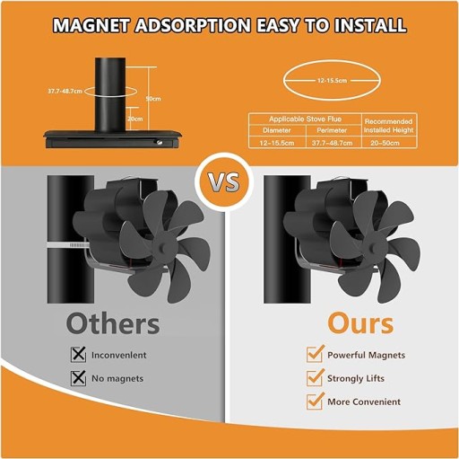 КАМИННЫЙ ВЕНТИЛЯТОР 6 ЛОПАСТЕЙ для печной трубы БЕСШУМНЫЙ С ТЕРМОМЕТРОМ