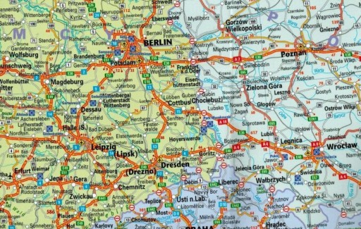Składana, laminowana, dwustronna mapa samochodowa Europy w skali 1:3 400 000 wydawnictwa Demart.