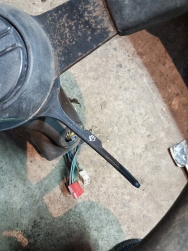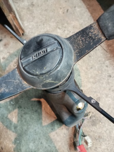 Nie jest nowa, ma już swoje lata i zaczyna z kierownicy schodzić materiał. Ale widzę że jakby kawałek odprysło, ale ogólnie nie źle się trzyma. Sprężyna jest, czyli sygnał działa. A reszta spodu pod nią nie wiem czy działa, więc resztę dodaję gratis.