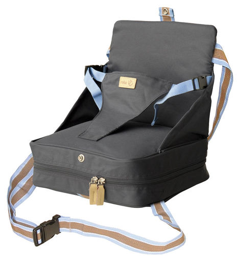 Po złożeniu wygląda jak plecak i jest łatwe w użyciu. Wykonany z materiału łatwego w pielęgnacji, odpornego na deszcz. Wystarczy nadmuchać siedzisko i włożeyć je w przeznaczone do tego miejsce, a pasami zaczepić do krzesła. Pozowli dziecku na spożywanie posiłków przy stole z resztą członków rodziny.