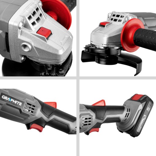 Szlifierka kątowa tego typu charakteryzuje się wygodną konstrukcją – dwupozycyjną rękojeścią boczną oraz antypoślizgowymi uchwytami, zapewniającymi odpowiednią stabilizację w dłoniach. Korpus umożliwia beznarzędziowy montaż i regulację osłony tarczy.