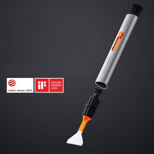 Pióro składa się z dwóch elementów głównych. Z jednej strony posiada regulowany pędzelek czyszczący, z drugiej strony natomiast wymienną końcówkę - trójkątną, pozwalającą na usuwanie tłustych zabrudzeń, smug z powierzchni optycznych.