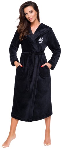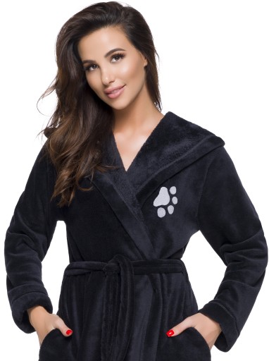 Dla miłośników zwierząt, szlafrok z haftem psiej łapki - na wysokości biustu.