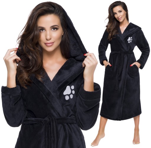 Dla miłośników zwierząt, szlafrok z haftem psiej łapki - na wysokości biustu.