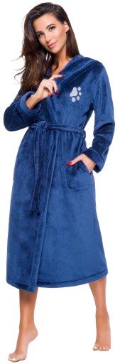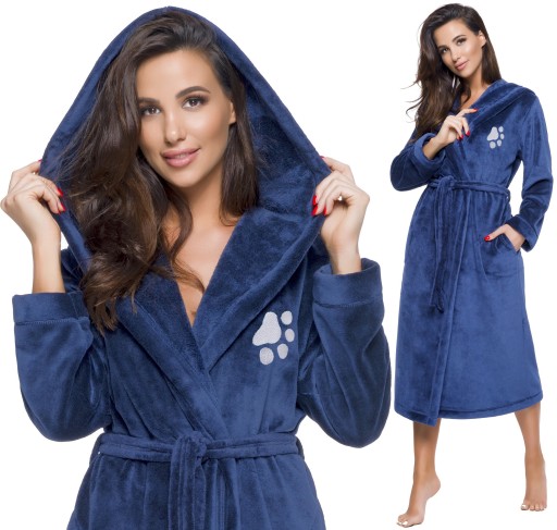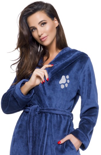 Dla miłośników zwierząt, szlafrok z haftem psiej łapki - na wysokości biustu.