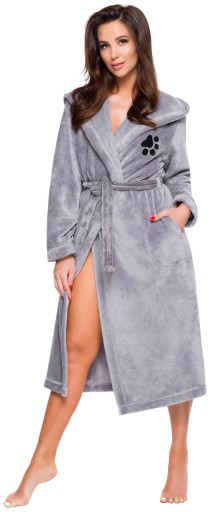 Dla miłośników zwierząt, szlafrok z haftem psiej łapki - na wysokości biustu.