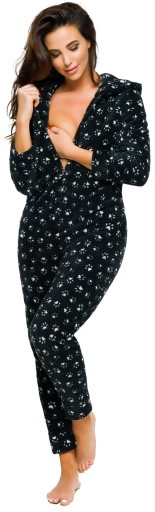 Miły kombinezon z kapturem. Zapinany na zamek. Piżama z praktycznymi kieszeniami. Całość w psie łapki.