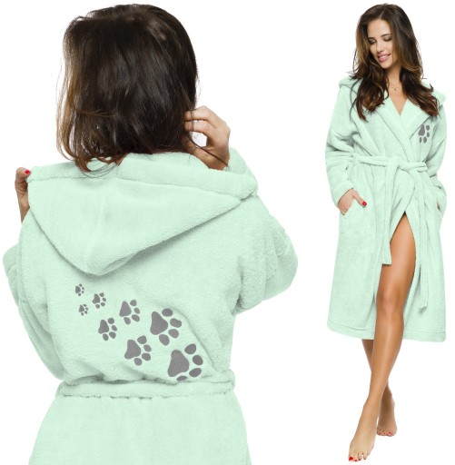 Dla miłośników zwierząt, szlafrok z haftem psiej łapki - na wysokości biustu