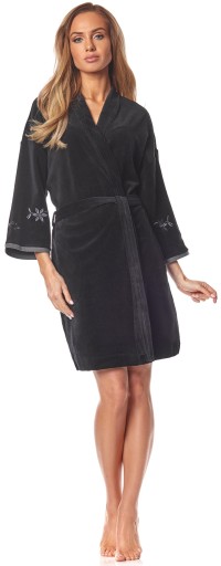 Szlafrok w wersji przed kolana bez kaptura.
