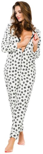 Miły kombinezon z kapturem. Zapinany na zamek. Piżama z praktycznymi kieszeniami. Całość w psie łapki.