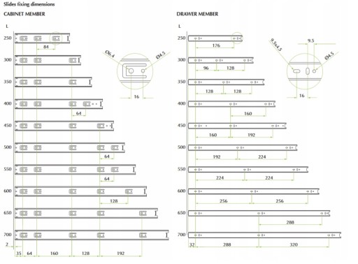 Zestaw zawiera: Komplet prowadnic (prawa i lewa)