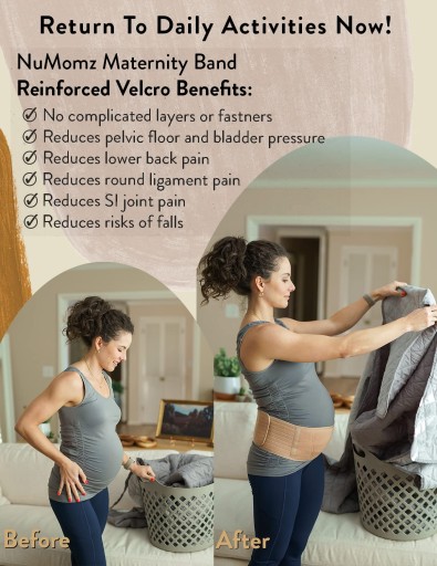 Łagodzi ból dolnej części pleców w czasie ciąży, a kręgi lędźwiowe przesuwają się do bolesnej pozycji do tyłu. NuMomz pomaga rozłożyć ciężar i zrównoważyć środek ciężkości.