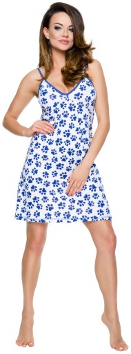 Sportowa damska koszula nocna z nadrukiem w psie łapki. Dekolt wykończony z gładkiego materiału w kolorze łapek.