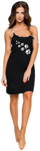 Sportowa damska koszula nocna z nadrukiem psich łapek. Ramiączka i góra koszuli wykończona materiałem w łapki.