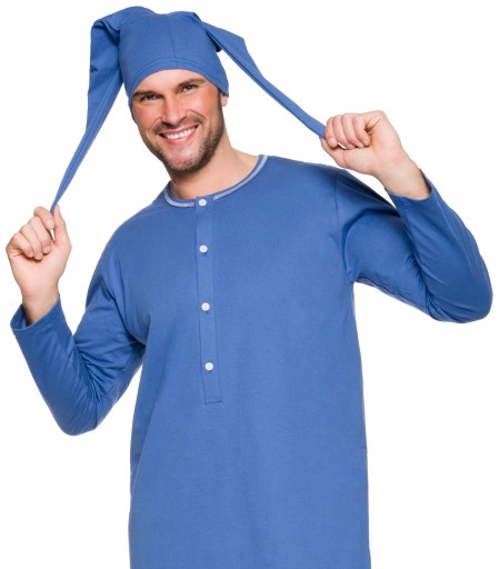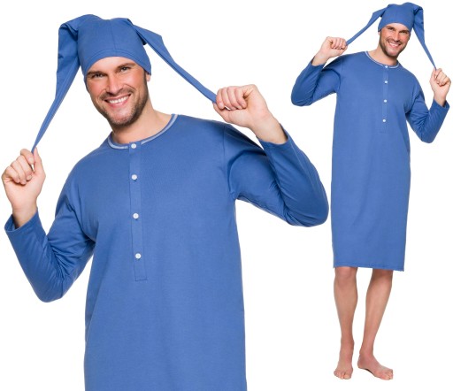 Klasyczna koszula nocna dla Panów w zestawie ze szlafmycą.