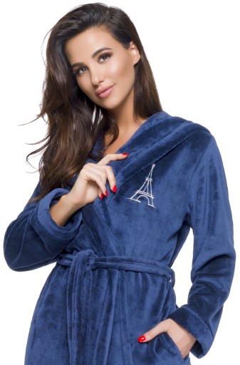 Szlafrok z haftem wieży Eiffla - na wysokości biustu.