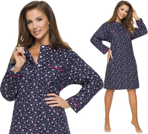Model z długim rękawem. Całość w kwiatki, trzy guziczki przy szyi, kieszonka na piersi.
