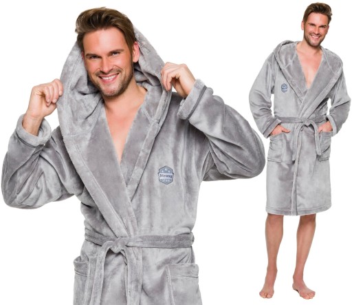 CIEPŁY MIŁY DŁUGI SZLAFROK MĘSKI Z KAPTUREM M