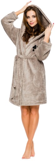 Dla miłośników zwierząt, szlafrok z haftem psiej łapki - na wysokości biustu i na plecach.